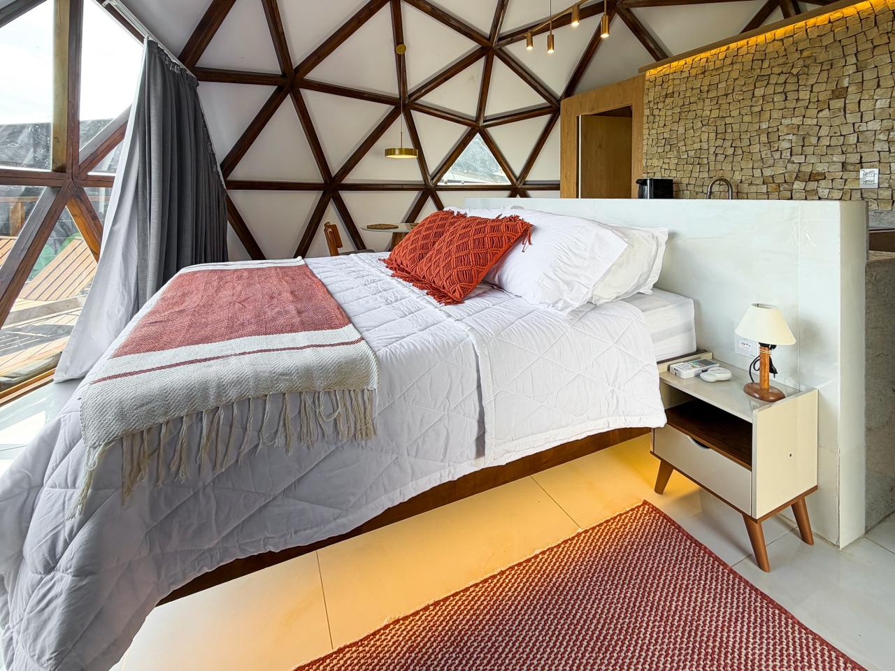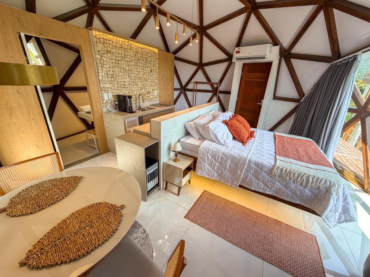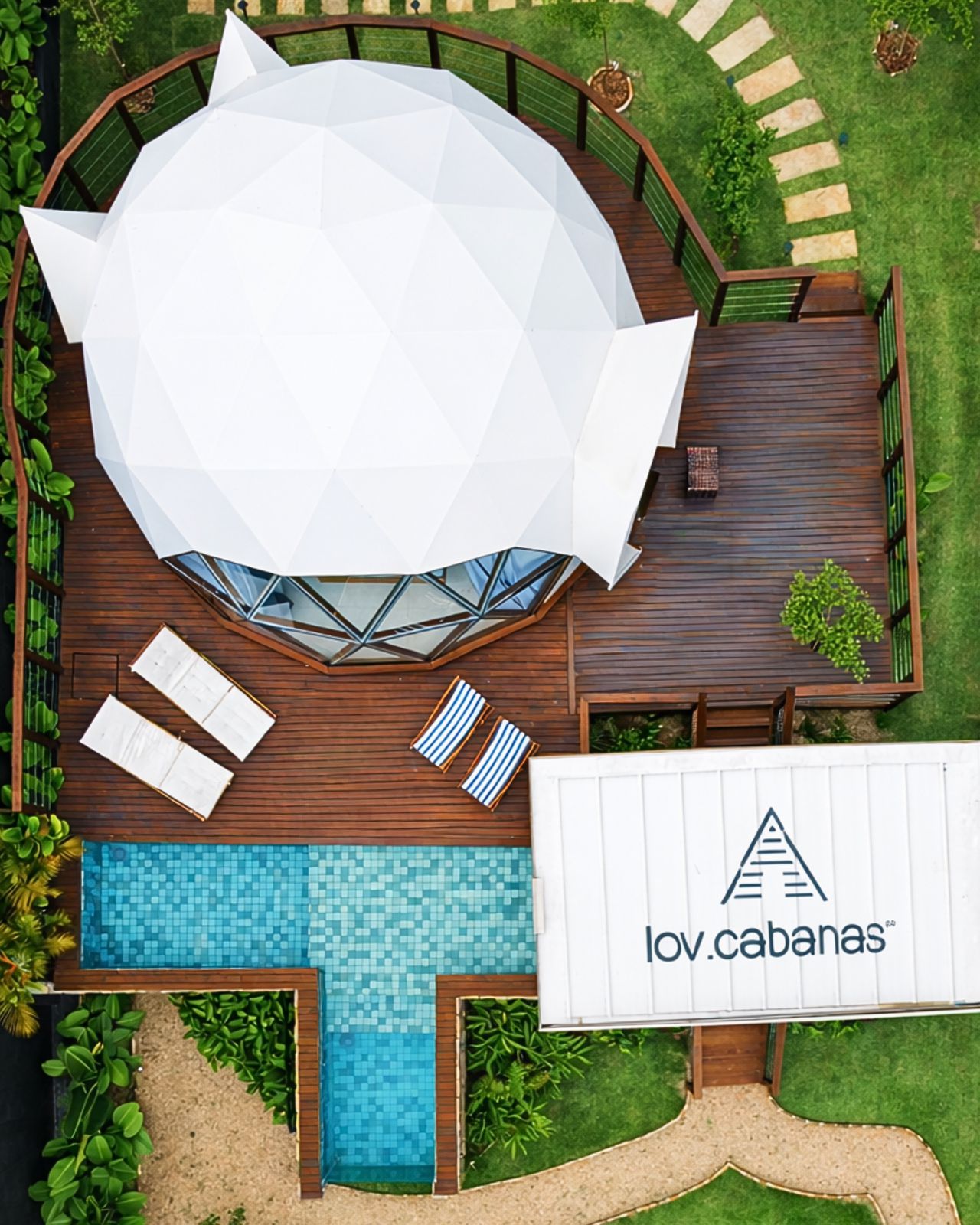 O Domo geodésico da LOV Cabanas é para quem gosta de viver experiências diferentes. Desde o primeiro contato, o formato, a luz e a vista para o verde criam uma sensação de refúgio, como se o tempo passasse mais devagar ali dentro.