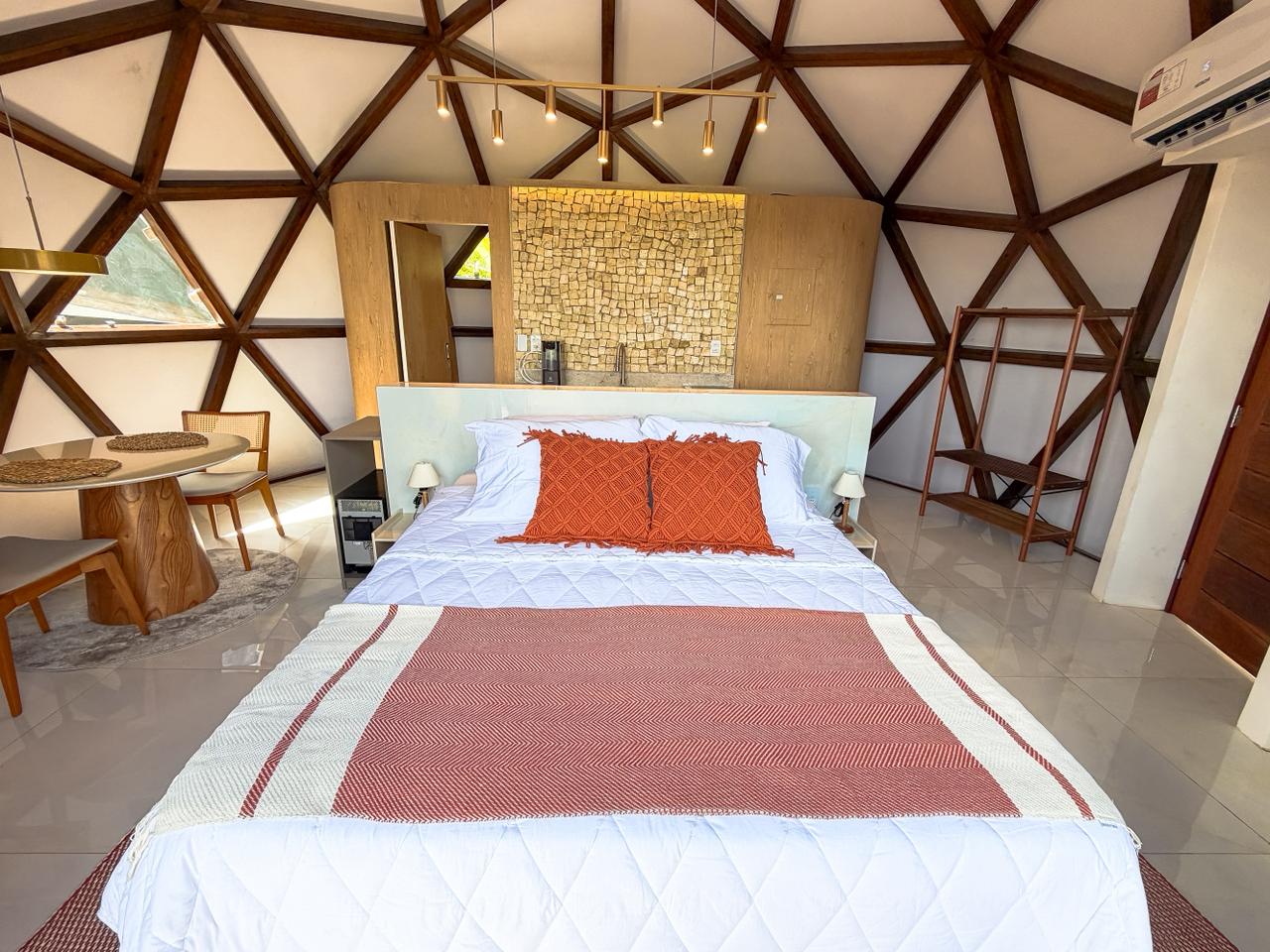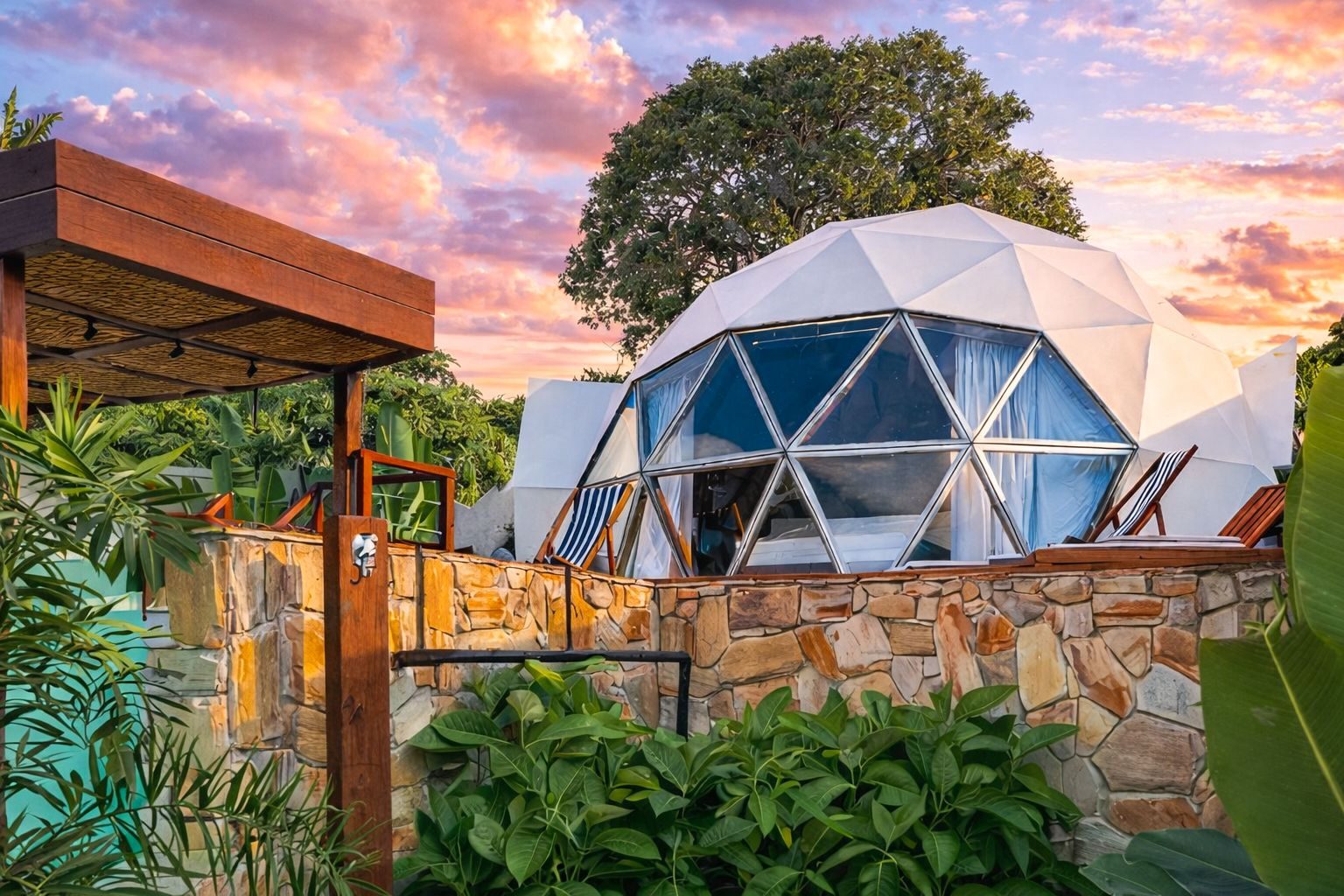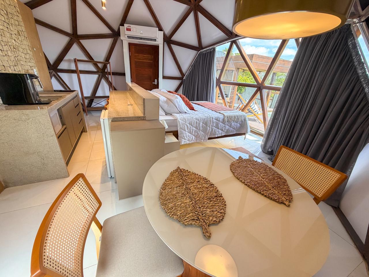 O Domo geodésico da LOV Cabanas é para quem gosta de viver experiências diferentes. Desde o primeiro contato, o formato, a luz e a vista para o verde criam uma sensação de refúgio, como se o tempo passasse mais devagar ali dentro.