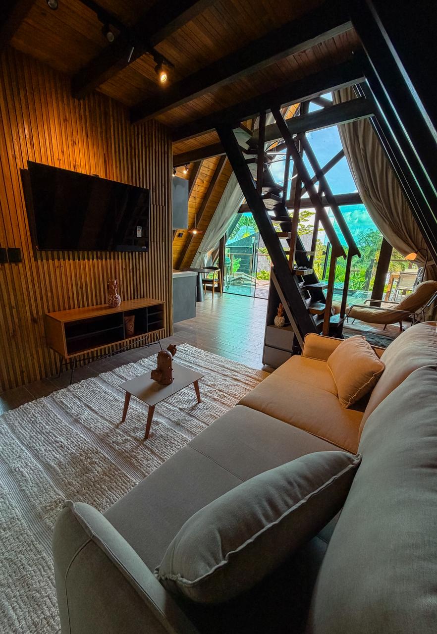 Com uma arquitetura marcante e um clima acolhedor, a cabana convida o casal a desacelerar. A vista para o verde, a piscina privativa, o teto panorâmico… tudo ajuda a criar aquele tipo de momento que a gente guarda na memória. É o lugar certo para comemorar algo especial ou simplesmente viver um fim de semana sem pressa.